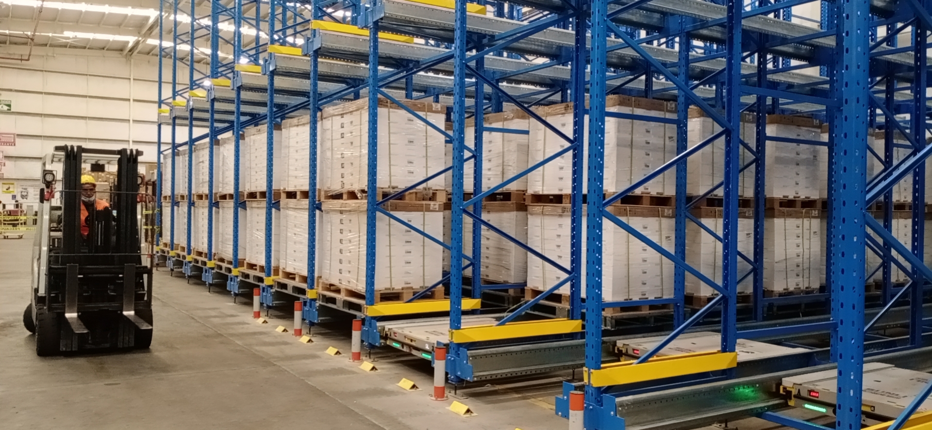 Novas estantes: Uma grande área de armazém, com uma área de estantes de 3 camadas com cerca de 385m2, pode armazenar 375 paletes de carga.Uma pequena área de armazenamento com uma área de racks de 3 camadas de cerca de 890m2, pode armazenar 1155 paletes de carga.